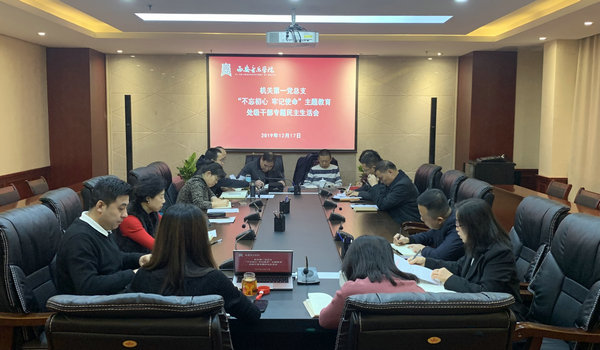 按照校党委安排部署,2019年12月17日,机关第一党总支召开“不忘初心、牢记使命”主题教育处级干部