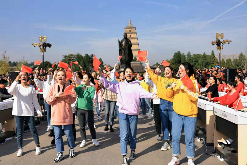 2019年10月27日,音乐教育学院师生与西安市不同小学、幼儿园的孩子们在西安大唐不夜城大雁塔南广场