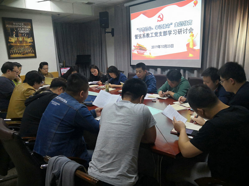 2019年10月23日,管弦系教工党支部召开“不忘初心、牢记使命”主题教育学习研讨会。 会