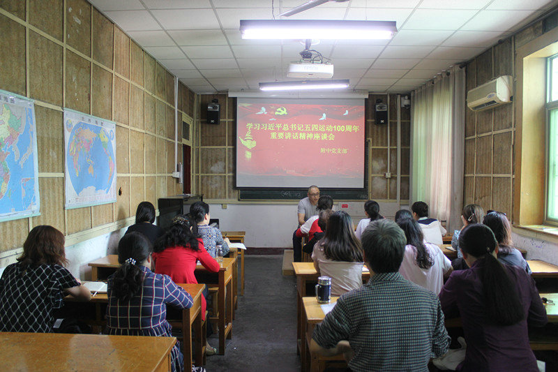 2019年5月17日,附中党支部召开学习习近平总书记纪念五四运动100周年重要讲话精神座谈会和“不忘