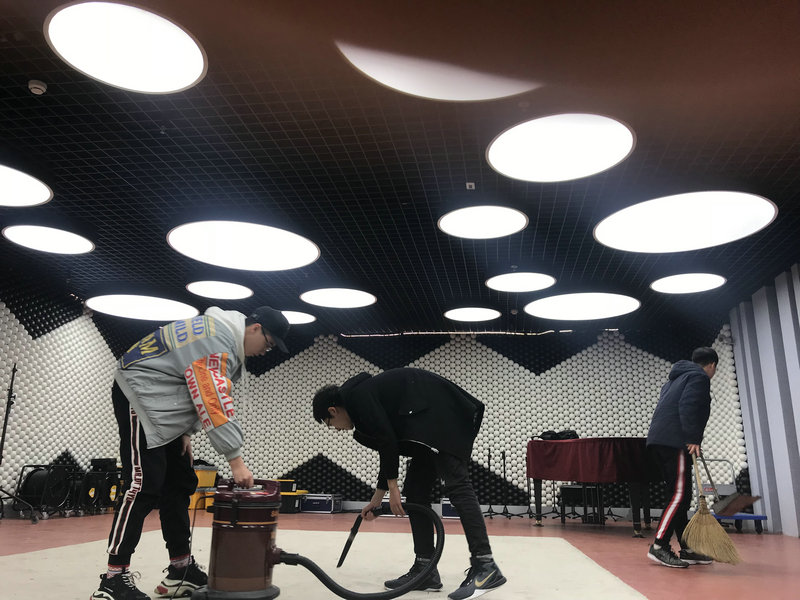 2018年3月9日,现代音乐学院团总支组织青年学生志愿者开展2018本科招生志愿服务工作,清扫所有候
