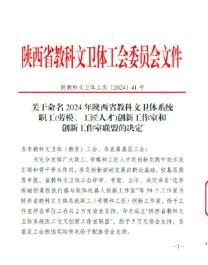 喜报|我校2个工作室获批2024年陕西省教科文卫体系统职工(劳模、工匠人才)创新工作室
