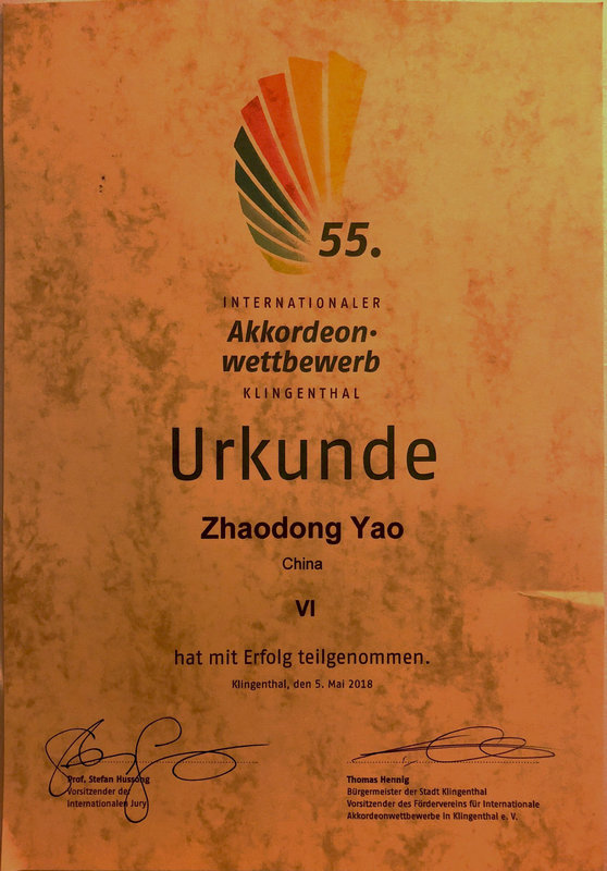 2018年5月5日,第55届德国克林根塔尔国际手风琴比赛圆满落下帷幕,我校现代音乐学院手风琴专业20