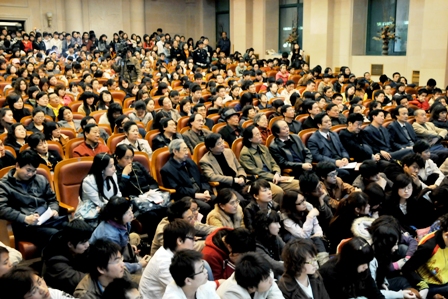 4月2日晚,应我院邀请,著名的作曲家徐沛东教授为我院师生作了一场精彩的专题学术讲座。讲座由院长赵季平教授主持,党委书记安宁和副书记、副院长孙卫国等院领导出席聆听了讲座。学术厅座无虚席,过道、门口都挤满了听众。