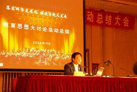 赵院长在会上宣读了《关于“教育思想大讨论”活动优秀组织单位和论文获奖个人的表彰决定》,随后院领导为获奖单位和个人颁发了证书和奖品。安书记在会上代表院党委作了总结讲话。
