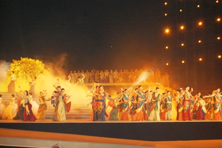 此次活动的最后一个环节是参与“陕西省法门寺文化景区”落成典礼的大型演出,我院舞蹈系承担了开场和结尾两个重要舞段,排练和演出期间,我系教师和学生克服了种种困难,把课堂教学、基础训练与排练紧密结合,既加强了课堂教学,又突出了实践环节,教师学生对实践活动的认识得到进一步提高。演出前一周全体学生驻扎在法门寺景区,带队老师和学生全身心投入联排、演出,学生实践能力得到很大提高。(舞蹈系)