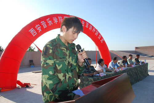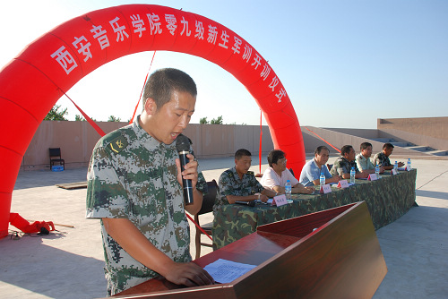 西安音乐学院大学生军训团参谋长许志成主持动员大会