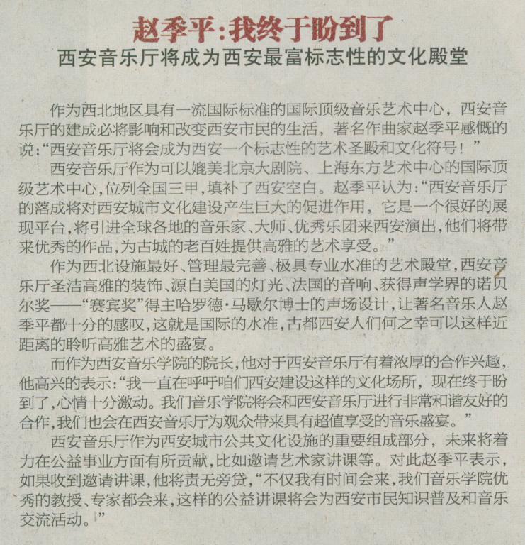 《《西安晚报》2009年9月22日第2版 赵季平:我终于盼到了》2009年9月22日第2版 赵季平:我终于盼到了