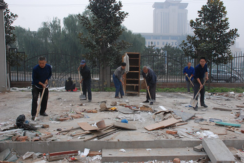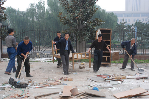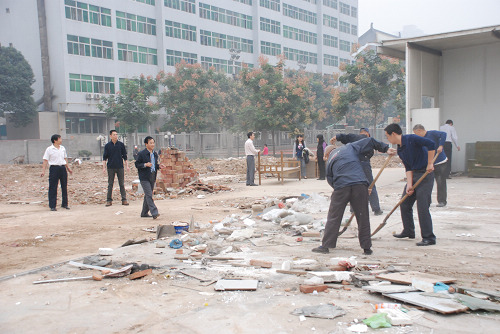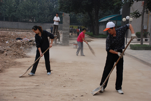 为了迎接国庆、校庆的到来,使校园有一个干净整洁的环境,9月25日上午,后勤处全体同志在几位处领导的带领下,在校园内开展了卫生大扫除活动。(后勤处)