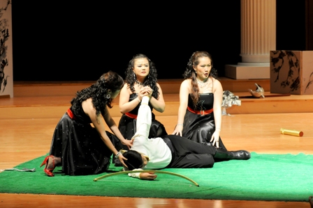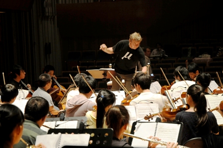 2009年10月8日下午,院党委书记安宁,院长赵季平,副书记、副院长孙卫国,副院长白陆平等领导,前往曲江西安音乐厅检查歌剧《魔笛》排练情况。(摄影:施宏)