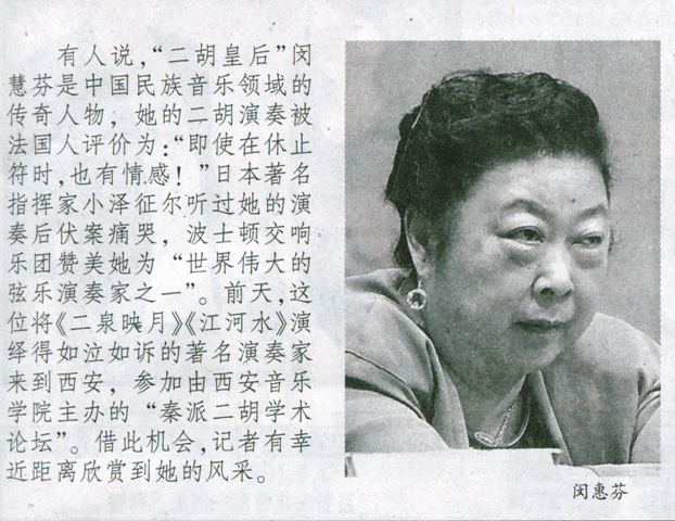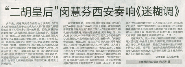《西安晚报》2009年10月12日 “二胡皇后”闵慧芬西安奏响《迷糊调》