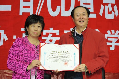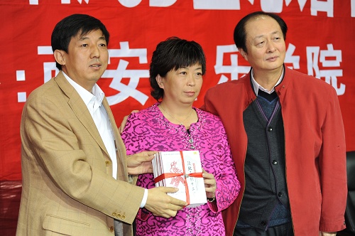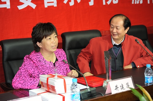 新闻发布会上,我院副院长、作曲系主任韩兰魁介绍了无伴奏合唱《陕北民歌十二首》的创作与出版情况,院长赵季平、副市长井建萍先后发表了讲话。井建萍还代表榆林市政府向赵季平颁发了高级文化顾问和荣誉市民证书。