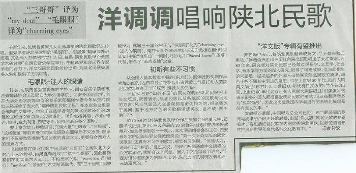 《西安晚报》2009年10月13日 第13版 洋调调唱响陕北民歌