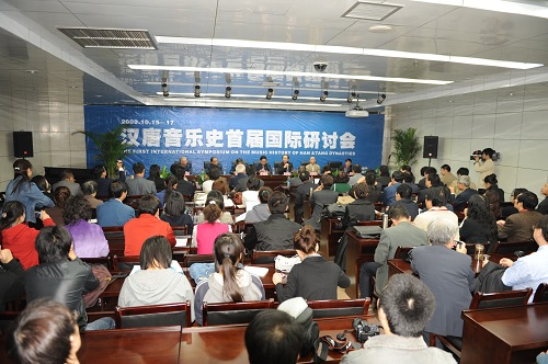 由我院主办,中国艺术研究院音乐研究所、中国音乐史学会协办的“汉唐音乐史首届国际研讨会”在我院举行。2009年10月15日上午,在五号教学楼二楼会议室举行了隆重的开幕式。开幕式由我院副院长罗艺峰教授主持,我院党委书记安宁,院长赵季平,党委副书记、副院长孙卫国,副院长白陆平、韩兰魁,中国音乐史学会会长戴嘉枋教授、副会长修海林教授,中国艺术研究院音乐研究所所长《中国音乐学》主编张振涛研究员,上海音乐学院陈应时教授,德国布莱梅大学克莱宁教授,台湾大学沈冬教授,国际传统音乐学会韩国本部长权五圣教授,日本东洋音乐学会副会长塚原康子教授,武汉音乐学院丁承运教授等出席了开幕式并致辞,赵季平院长发表了热情讲话。来自中、德、日、韩以及中国台湾地区等有关专家、学者和媒体记者等100余人参加了大会。
