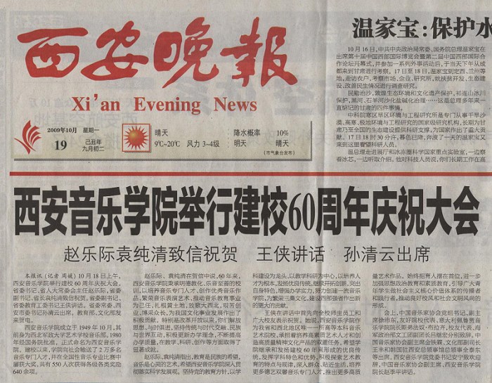 本报讯(记者周媛)10月18日上午,西安音乐学院举行建校60周年庆祝大会。省委书记、省人大常委会主任赵乐际,省委副书记、省长袁纯清致信祝贺。省委副书记、省委教育工委书记王侠讲话。省委常委、西安市委书记孙清云出席。教育部、文化部发来贺电。