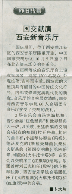 《音乐周报》2009年10月21日第3版 国交献演西安音乐厅