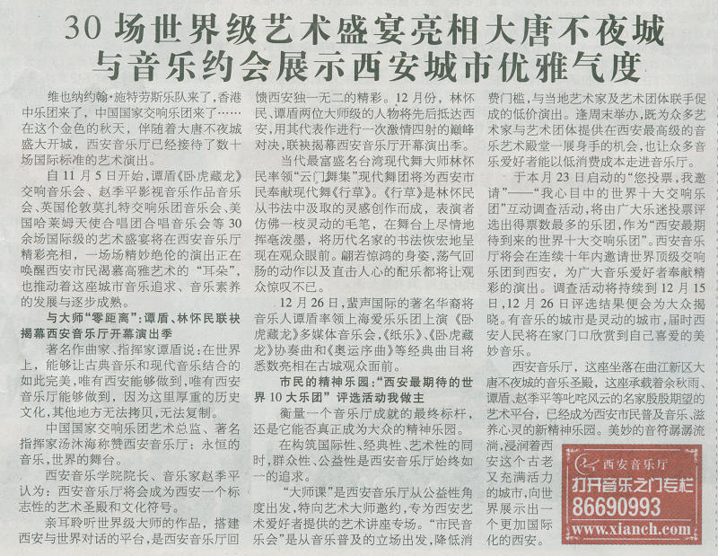 《陕西日报》2009年10月29日第3版 赵季平影视作品将在西安音乐厅精彩亮相