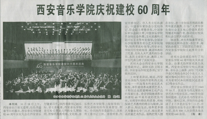《中国艺术报》2009年10月27日中国音乐版 西安音乐学院庆祝建校60周年