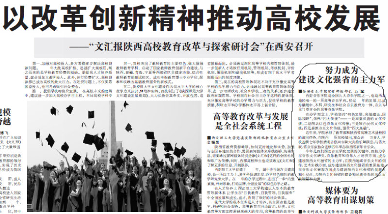 万斌在文汇报陕西高校教育改革与探索研讨会上的发言