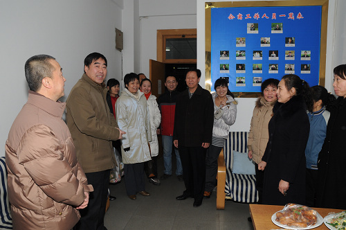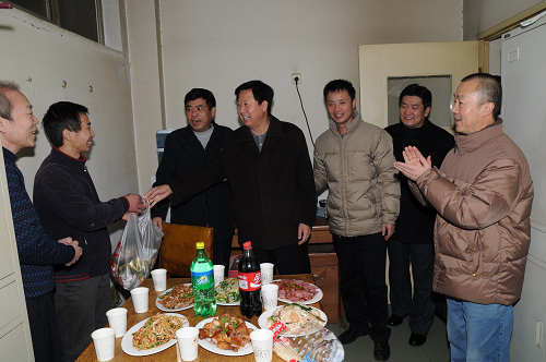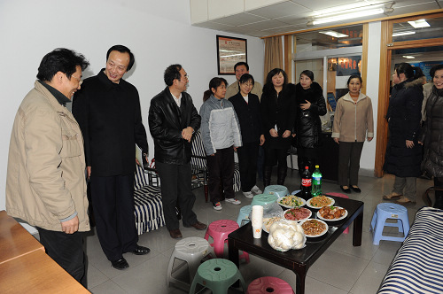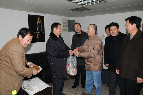 光阴似箭,岁月如梭,时针指向2009年12月31日下午6时。劳累了一年的工作人员为了保证节日期间学院的学习生活秩序,仍坚守在各自的岗位上忙碌着。院领导和机关处室负责人也在奔走一线,兵分两路看望坚守岗位的同志们。纪委书记王平、副院长白陆平、党政办主任于金波、干部人事处处长冯力斌前去北门值班室、2号公寓值班室、锅炉房值班室和教务处慰问;副院长韩兰魁、副院级调研员史军胜、宣传部部长史晓眉、党政办副主任张凌看望了1号公寓值班室、东门值班室、学术厅值班室、家属区地下值班室、配电室的值班人员。学院为值班人员送去了精心准备的饭菜和迎接新年的夜点。每到一处,领导的声声问候、值班人员的朗朗欢笑,无不使人感受到融融的暖意和校园的和谐。每一个西音人都难忘学院2009的跃进,期盼着2010的收获。(小目)