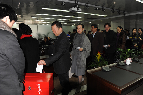 省委组织部宣教干部处朱晓渭处长就我院正厅级副院长推荐工作提出了具体推荐人选的条件、资格、方法和步骤及要求。考察组工作人员现场发票,组织参会人员进行填写并投票。