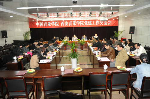 会上,孙卫国同志介绍了参加交流的双方学院领导、部门负责人和相关系党总支书记。中国音乐学院景副院长介绍了此行的目的和中国音乐学院的建设发展概况。党委书记安宁介绍了我院近两年加强党的思想、理论、作风和制度建设,按照新的办学理念,规划发展目标、确定发展路径、实行发展措施等情况。考察组成员在我院有关领导同志陪同下,细致全面地参观了校史馆、西北音乐文化展馆、专家工作室、学术排练厅等场所,并深入相关系与该系党组织负责人,面对面探讨如何加强党的建设、改进学生教育管理工作。