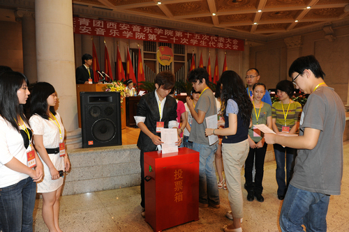 2010年5月29日上午9时,共青团西安音乐学院第十五次代表大会暨西安音乐学院第二十次学生代表大会在学术厅隆重举行。参加大会的正式代表共181名(其中包括团代会代表91名,学代会代表90名)。代表们全部到会,符合法定开会人数。大会由谢燕同志主持。