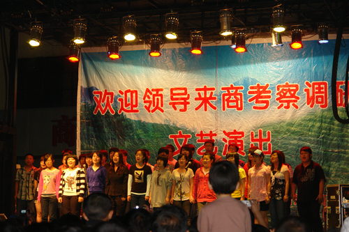 6月5日—6日师生们还深入民间,到赵川、湘河、富水三镇进行了为期2天的当地民间音乐、民歌采风活动,并与民间艺术家深入交流。期间观看了商南风光片,由商南县政府办公室主任胡中华先生与文化局叶有生干事介绍了陕南概况及历史文化传承。在湘河参观了社会主义新农村建设风貌,采录了农民歌手演唱的部分民歌曲调,举行了帮贫助困献爱心活动,让学生们深刻的感受到学习的不易与艰辛,能够更加珍惜现在的学习机会。在塘坝广场、任家沟广场观看了县政府为我们精心准备的地方音乐、戏曲、山歌、小调等体裁多样内容丰富的艺术表演,使大家大开眼界,受益匪浅。
