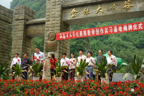 6月4日至6日,我院作曲系全体师生120余人,赴商南举行“西安音乐学院作曲系商南教学创作采风实习基地”挂牌仪式暨采风活动。挂牌仪式于6月4日上午在金丝峡举行,我院副院长白陆平、中共商南县委宣传部部长郑晓燕、主管县长殷延青及金丝峡管委会、县教育局、文体局等相关领导出席。