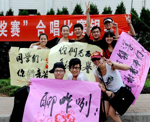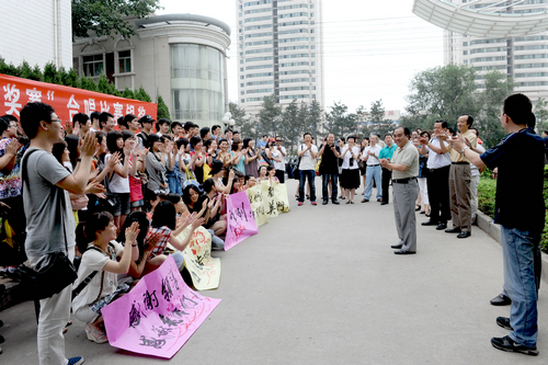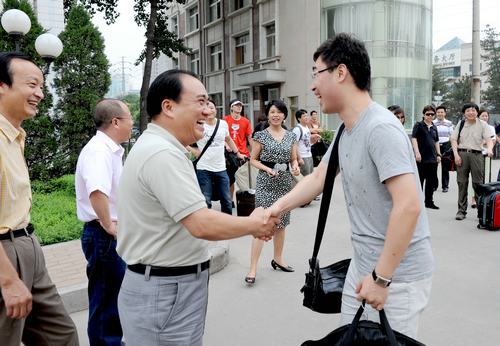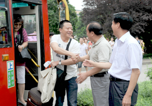 2010年6月28日上午9时40分,院党委副书记、常务副院长孙卫国,纪委书记王平,副院长安金玉、韩兰魁,副院级调研员史军胜,以及举着欢迎、问候和祝贺标语的部分师生员工,在学院北大门热烈欢迎我院合唱团载誉而归。