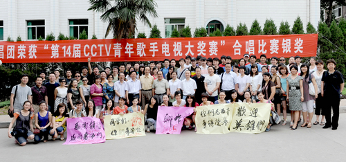 欣闻合唱团载誉归来,院领导和部分师生,早早聚集在学院北门口笑逐颜开地等候。与合唱团师生一见面,大家便相互道贺庆祝,现场爆发出阵阵欢呼声和掌声。院党委副书记、常务副院长孙卫国代表院领导和全院教职员工发表了热情洋溢的讲话,向全体合唱团成员和工作人员表示慰问和祝贺,并转达了省上领导对学院合唱团取得的骄人成绩所给予的祝贺,还告诉大家省内多家媒体进行了及时报道。在场的师生员工听后兴奋不已,热烈鼓掌。欢迎仪式后,院领导同合唱团师生合影留念。