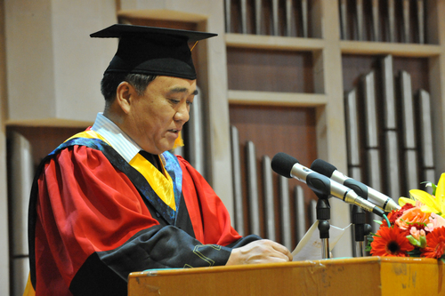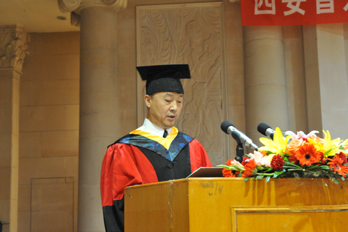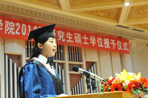 党委书记安宁教授代表学院讲话,向即将毕业并获得硕士研究生学位的同学们表示热烈的祝贺;向悉心指导和培养研究生的全体导师,以及为学位与研究生教育工作做出贡献的广大教职工们表示衷心的感谢;向支持研究生勤奋学习的各位家长和亲属们,表示亲切的问候。讲话中,安宁书记对即将毕业的硕士研究生们提出了三点希望:希望同学们坚定理想信念,保持学以致恒的精神和追求卓越的信心;希望同学们不断完善自己的人格品质,修身进德,德艺双彰;希望同学们扬帆远航,毋忘母校。感人肺腑的讲话深深打动了在场每一位同学,博得了他们热烈的掌声。