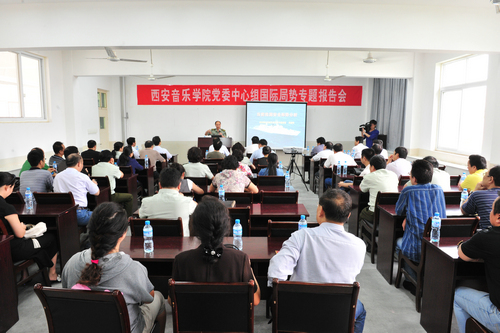 为纪念中国人民抗日战争胜利65周年,9月1日,院党委中心组组织了一次比较特殊的学习活动。全院副处级以上领导干部,前往户县——陕西陆军预备役高射炮兵师训练基地聆听国际形势报告,慰问看望我院在军训基地的师生并观看军训歌咏比赛。
