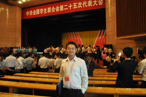 全国学联第二十五次代表大会于8月24日在北京人民大会堂隆重开幕。党中央总书记、国家主席胡锦涛同志向大会的召开发来贺信,副主席习近平等党和国家领导人出席大会。经过院团委推荐,报上级部门严格审核,我院学生会主席王启泽同学荣幸地当选为全国学联二十五大正式代表,成为由二十余位代表组成的陕西代表团成员之一,赴京参会。