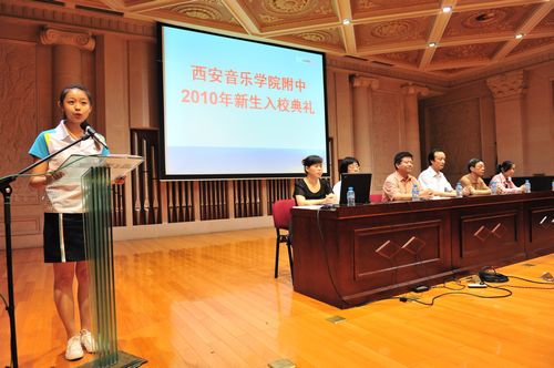 唐灵宝校长代表附中全体师生致辞。他特别对全体新生提出了培养专业意识、加强文化课学习、注重思想品德塑造的要求,并希望在家校结合、共同教育的过程中,努力实现附中“为学院的本科教育培养和储备优质生源”的办学目的。初06级学生李卓洋代表附中学生对全体新生表示热烈欢迎,并希望新老学生相互关心、相互学习、共同成才。附初2010级新生董方宁代表全体新生发言,明确提出了努力成为“有理想、有道德、有文化、守纪律”的优秀学生的号召。