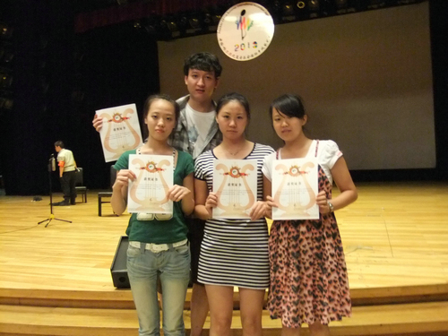 获奖选手合影(前排左起:张艳婷、闵昱、曾红,后排:王文涛)