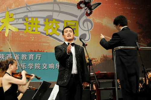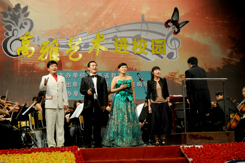 2010年9月15日晚,作为陕西省教育厅2010年高雅艺术进校园活动内容之一,我院交响乐团中外经典音乐会首场演出在延安大学大礼堂举行。同时,也标志着2010年高雅艺术进校园活动正式启动。