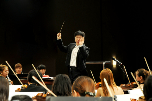 延安大学党委副书记高延龙亲自挥棒指挥《拉德斯基进行曲》