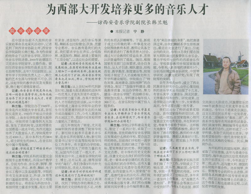中国艺术报 2010年9月14日 中国艺术教育专刊 为大西部开发培养更多音乐人才