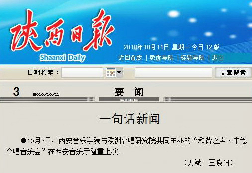 《陕西日报》2010年10月11日第3版 一句话新闻.
