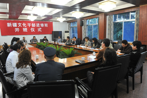2010年10月12日下午,学院在培院二楼会议室举行了新疆文化干部进修班开班仪式。院党委书记安宁、党委副书记常务副院长孙卫国、副院长白陆平出席,进修班学员及党政办、宣传统战部、声乐系、教务处、学工部、后勤处等有关部门负责人参加了开班仪式。