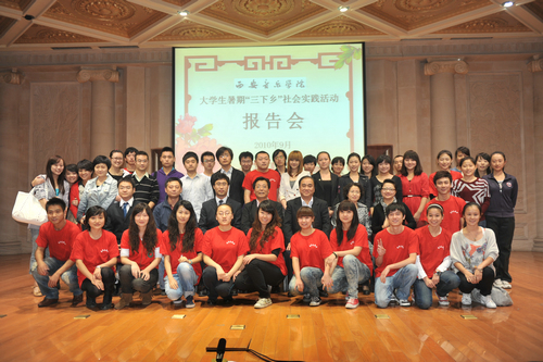 由院团委集中组队和音乐学系、管弦系组织的9支志愿服务队的学生代表分别做了真挚而生动的报告。他们突出各队的实践特色,向在场师生深情讲述了在实践中不辞辛劳、奋勇拼搏,努力战胜困难和不断成长的过程,与观众分享了在实践中经历的无数感动与欢乐,并表达出对母校的崇敬与热爱之情。配合同步播放的精彩PPT,使报告更加真实感人,引起在场师生的强烈共鸣。当志愿者们身着红色志愿队服走上报告台时,会场响起热烈掌声。