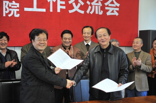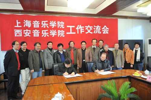 交流会上,上海音乐学院常务副院长徐孟东、西安音乐学院院长赵季平在两校《合作办学意向书》上签字,以加强两院校深度合作。