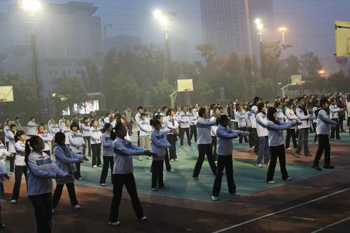 2010年11月1日早晨6:50,院党委副书记、常务副院长孙卫国带领“阳光体育运动领导小组”成员,来到学院操场检查学生晨练和早操情况,并就如何坚持开展好早操活动,提出了具体要求。对附中学生的早操活动给予了肯定和鼓励,并要求附中将早操活动长期坚持下去。