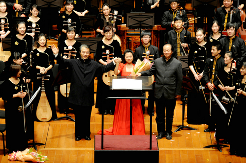 11月3日晚“唐风秦韵”音乐会,是根据唐代音乐和西北地区、陕西地方音乐素材创作的一组音乐作品。赵季平、鲁日融创作的《长安社火》,郭福团改编、从我院走到京城的著名板胡演奏家沈诚教授演奏的板胡与乐队《秦腔牌子曲》,一代国乐大师彭修文创作的《秦•兵马俑》幻想曲,我院已故教授饶余燕先生创作的音诗《骊山吟》,毕业于我院的著名作曲家程大兆先生创作的《黄河畅想》,使京城观众真切地领略到盛世长安的乐香,唐风秦韵的悠长。音乐会获得极大成功。