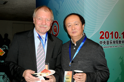 院长赵季平在中外音乐学院院长论坛上亲切会见丹麦皇家音乐学院院长贝特尔·克拉鲁普