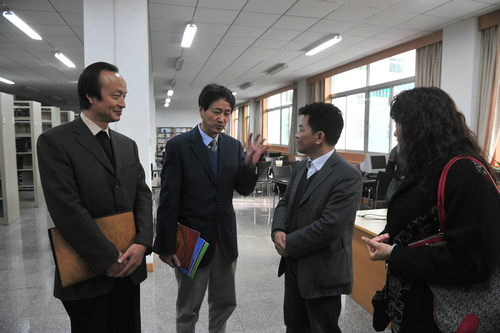 座谈会后,上海音乐出版社一行在王平书记以及刘荣弟馆长、马波副馆长的陪同下,参观了我院图书馆,并就图书馆馆藏及特色数据库的建设等问题进行了交流。
