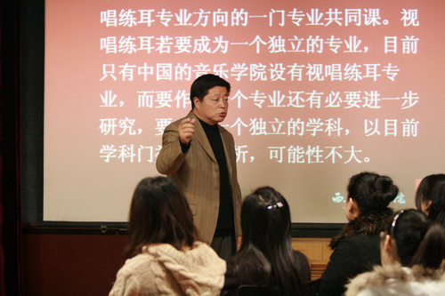这次公开教学活动将持续两周时间,由教务处具体组织实施,全院11个教学单位11位教授、副教授进行公开教学。各相关教研室主任及青年教师参加,相关班主任组织学生到课听讲。首场活动由视唱练耳教研室王高飞教授主讲。院党委书记安宁,党委副书记、常务副院长孙卫国及王光耀、郑敏、朱玉璋、刘荣弟教授,视练教研室全体师生及各系部分青年教师参加了此次公开课。
