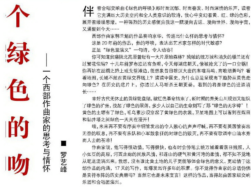 《人民音乐》2010年11月 给世界一个绿色的吻