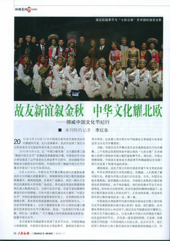 《人民音乐》2010年11月 故友新谊叙金秋 中华文化耀北欧